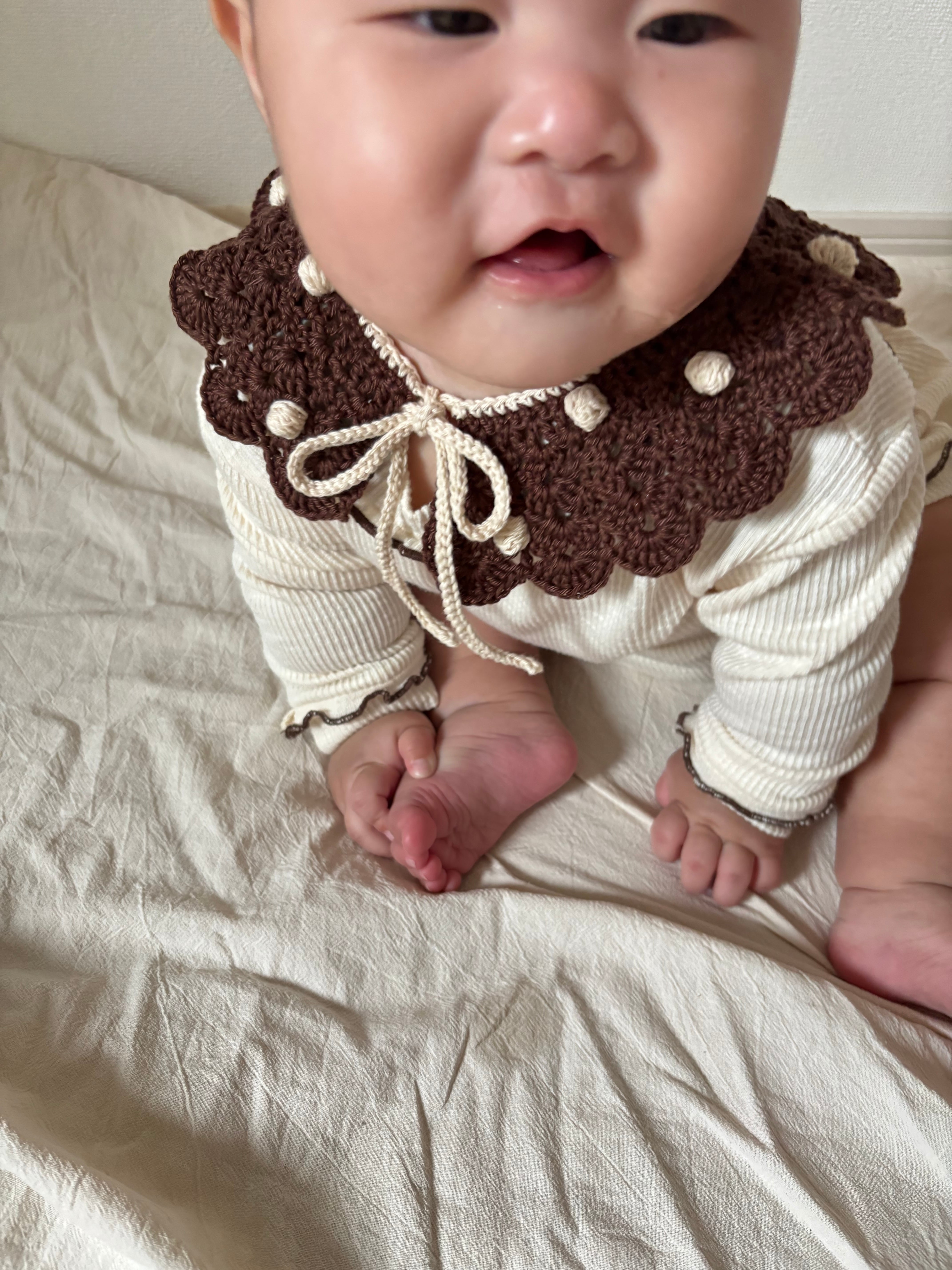 コットン100%の毛糸を使用していますので、赤ちゃんの肌に優しく安心できます♡